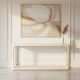 Enhance your contemporary home with the Westwood Console Table. Crafted with a textured alabaster plaster white finish and an open storage area, this rectangle-shaped table combines form and function effortlessly. Its minimalist design and light tones provide a perfect addition to modern living spaces, exuding understated sophistication. Understated and elegant, the Westwood Collection was designed for those who appreciate the finer things in life. Exuding a “quiet luxury" lifestyle, Westwood seamlessly blends minimalist aesthetics with sophisticated comfort. Crafted with quartered oak veneers, the Polished Limestone finish offers a soft hand, adding character and depth to the group. Plated hardware and silver-leaf detailing adds to the soft modern appeal. Designed for those who value subtle sophistication, the whole home collection with coordinating upholstery can easily transform any space into an elegant haven of serenity and style.