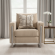 Enjoy this opulent and classy addition to your home! Modern beige chair with regal patterned cushions. With hints of gold and grey, this Wilson living room 1-seater by Roots Furniture is tasteful and classic. It works in almost any living room and is a great addition to your home.