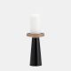 Wood, 19 Flat Candle Holder Stand, Black/Natural