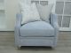 wood silver frame upholstered cool grey chair.